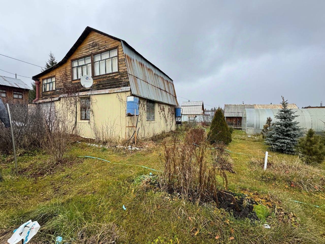 На участке есть новая баня из бревна, 2 теплицы, зона отдыха(по периметру которой установлен забор из профлиста). Капитальный гараж пристроен к дому.
