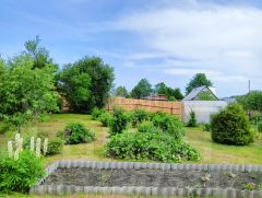 Земля очень плодородная. Участок ухоженный, растут плодовые деревья, смородина (черная, красная, белая), малина, клубника, ирга, черноплодная рябина, крыжовник, много цветов. Каждую осень собирается большой урожай. Де-юре, площадь территории 24,94 сотки, а по факту около 40 соток.
