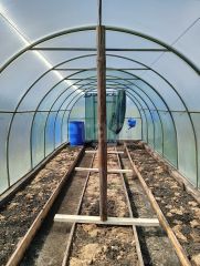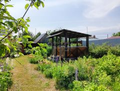 На территории имеется металлический гараж, новая беседка, три больших теплицы (длиной 8,6,4 м, оборудованы стационарными грядками, затеняющими и противомоскитными сетками) в отличном состоянии и ещё несколько хоз построек различного назначения.