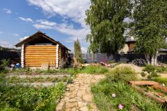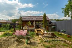 В процессе установка бани из оцилиндрованного бревна 4х4 метра.
