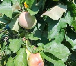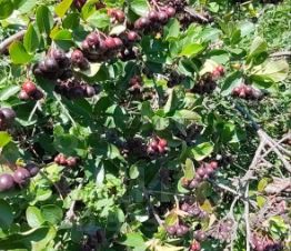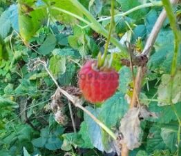 Плодоносящие яблони, плодоносящие кустарники смородины, малины, жимолости, большая окультуренная гряда со сладкой клубникой.
