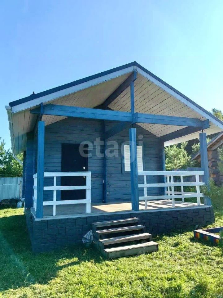 Дом можно использовать как летнюю дачу. Есть кухня, два спальных места, санузел с душевой кабиной и водонагревателем. На уютной веранде так приятно завтракать с видом на лес!