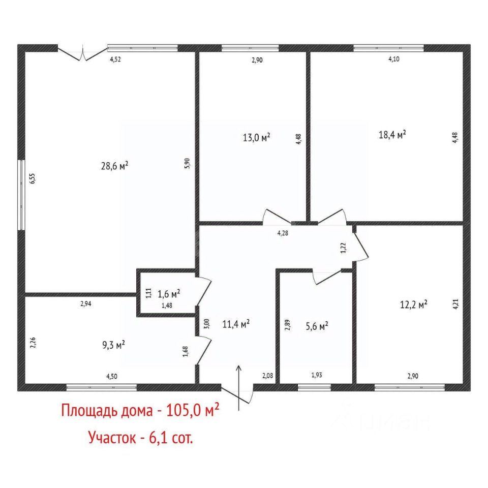 Планировка: кухня гостиная 28 кв.м., три спальни - 12,13 и 18 кв.м., два санузла и котельная 9,3 кв.м.
