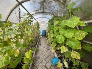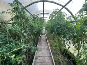 Участок разработан, плодоносящие деревья (яблони, груши, сливы), грядки с клубникой. На территории имеется небольшой домик (20м2), погреб-овощехранилище с собственной скважиной, 2 большие оборудованные теплицы. Имеется мангальная зона.