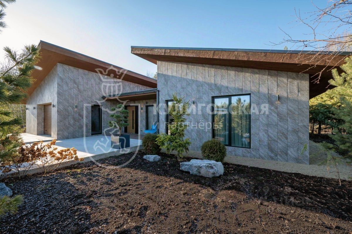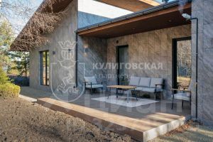 Сам коттедж расположен в тихом тупиковом месте рядом с лесом, что гарантирует полную тишину и единение с природой. Элегантный фасад дома с панорамными окнами и террасами гармонично вписывается в окружающий пейзаж. Дом выполнен в лаконичном стиле, с использованием высококачественных дорогостоящих материалов в нейтральных цветах с учетом самых актуальных трендов.