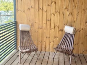 - Просторная терраса для уютных вечеров после баньки или утреннего кофе с видом на восход солнца.
