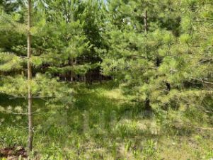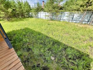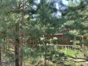 Участок правильной формы, с молодыми соснами, забор по периметру участка.