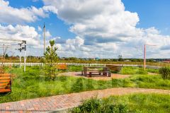 Участок правильной формы занимает удачное расположение — всего третий от въезда в поселок, что обеспечивает легкий доступ и хорошую транспортную доступность. В непосредственной близости находится парковая зона, где вы сможете наслаждаться прогулками на свежем воздухе и проводить время с семьей на природе.