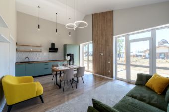 Основной фишкой дома являются панорамные витражные окна и высокие потолки с двойным светом!