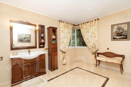 • Гараж: 67 м² с двумя автоматическими воротами Херман, теплые полы из натурального камня, встроенная стиральная машина, холодильник
