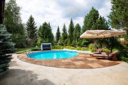 • Бассейн диаметром 7 м (круглогодичный подогрев газом/электричеством), система водоочистки, пляж у зоны бассейна из лиственницы
