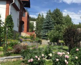 Участок оформлен по идивидуальному проекту ландшафтного дизайна с зелеными насаждениями, дорожками, освещением.