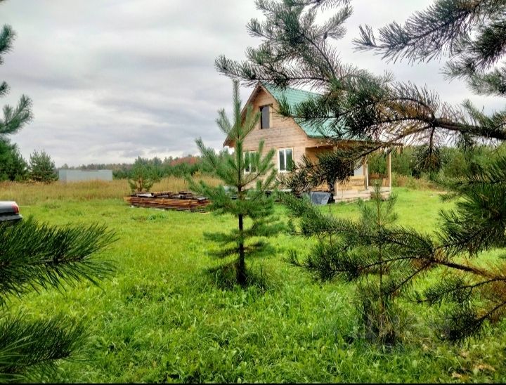 На участке недостроенный дом из бруса 68. Фундамент: буронабивные сваи. Обвязка свай: балки 150 на 200. Настил крыши: кровельный профилированный лист, цветной. Окна: 3 окна 120 на 140 (два уже поставлены). Дверь: качественная металлическая сейф-дверь для коттеджей с терморазрывом. Внутри дома пол, потолок сделаны, утеплены. Осталась - внутренняя отделка (приобретён ламинат).
