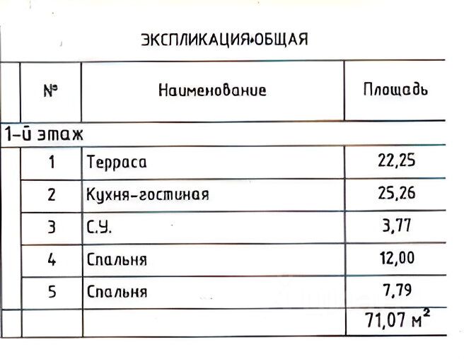 Участок ИЖС 10,38 соток, общая площадь дома 71 кв.м в том числе, терраса, кухня гостиная, спальня, гардеробная и санузел.