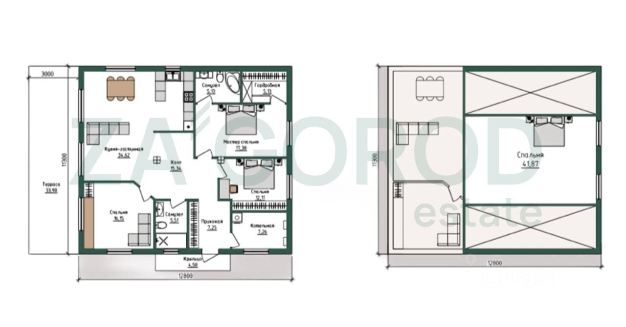 • Общая площадь: 125 м² + мансарда 40 м² + терраса 40 м²