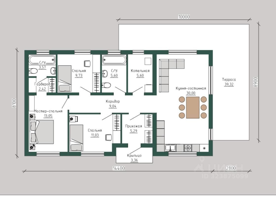 • 3 спальни (включая мастер-спальню с гардеробной и санузлом)