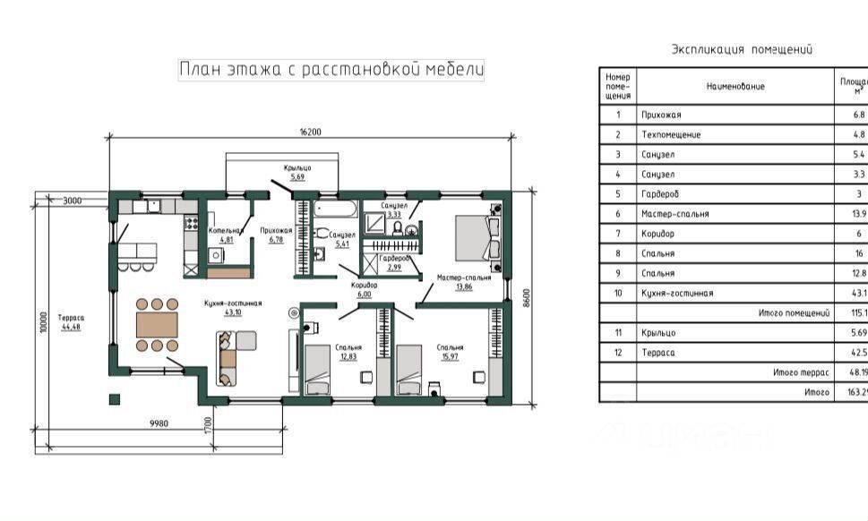 - Общая площадь: 115 м². Терраса: 40 м² два выхода, идеальна для отдыха.