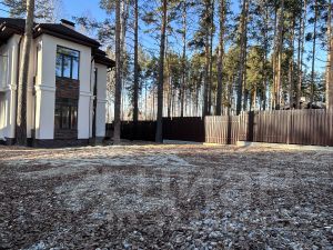 УЧАСТОК 9 соток. Огорожен забором - евро-штакетник на ленточном бетонном фундаменте. Откатные автоматические ворота. Калитка с выходом на прогулочную зону и детскую площадку. Сделана первичная подготовка под благоустройство участка. Перед участком сделана парковочная зона на 4 машины.