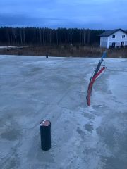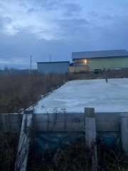 На участке построен мощный фундамент в виде плиты с коммуникациями размером 15*15 метров.