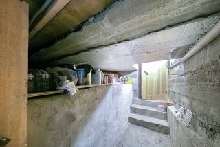 расположен под котельной и гостинной , оборудован для хранения овощей.