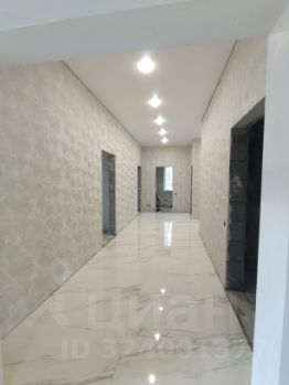 - пол в коридорах, гардеробных и в кухне гостиной - широкоформатный керамогранит (завершается монтаж); в спальных - ламинат;
