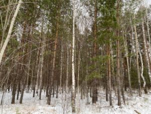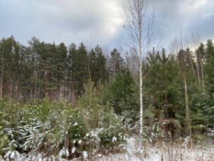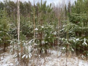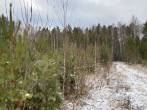 Участок ровный, расположен на окраине лесного массива в живописном месте. На самом участке растут сосны и другие деревья, которые можно вырубать для застройки (разрешение не требуются - участок и деревья в собственности, пересечений с лесным фондом нет).