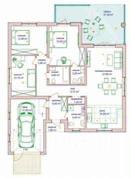 - 3 жилых комнаты: 15.92 кв.м., 12.15 кв.м. и 12.8 кв.м;