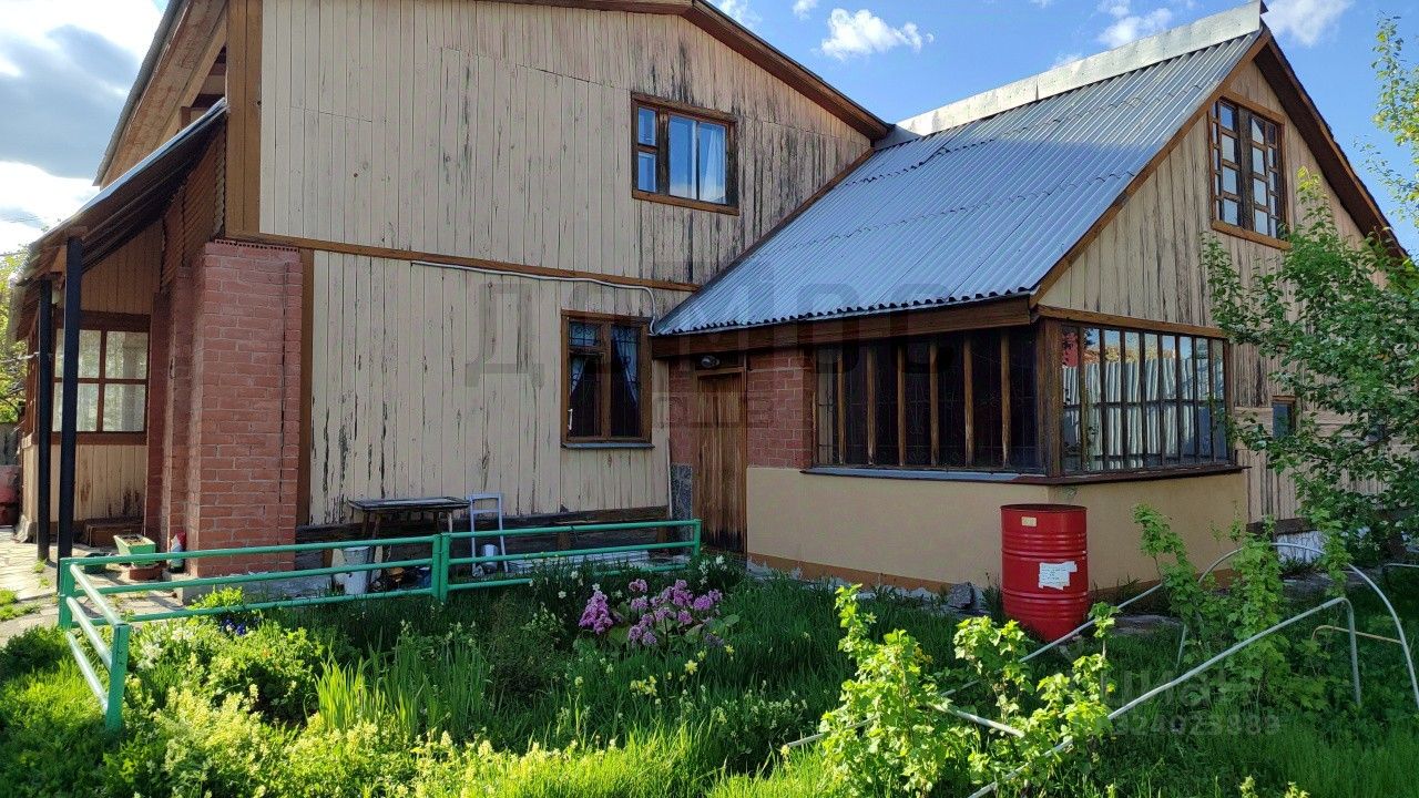 На участке расположен дом+ баня+ гараж и кладовые, все под одной крышей. Дом деревянный с печкой и камином. В доме два этажа, три жилых комнаты. Дом интересный, можно использовать как для сезонного проживания, или как гостевой.