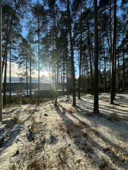 Участок расположен в окружении высоких сосен, чистейшего воздуха и невероятно живописного рельефа. Утренний свет проходит сквозь деревья, создавая волшебный лесной пейзаж - именно то, что привлекает туристов в формате эко-отдыха.