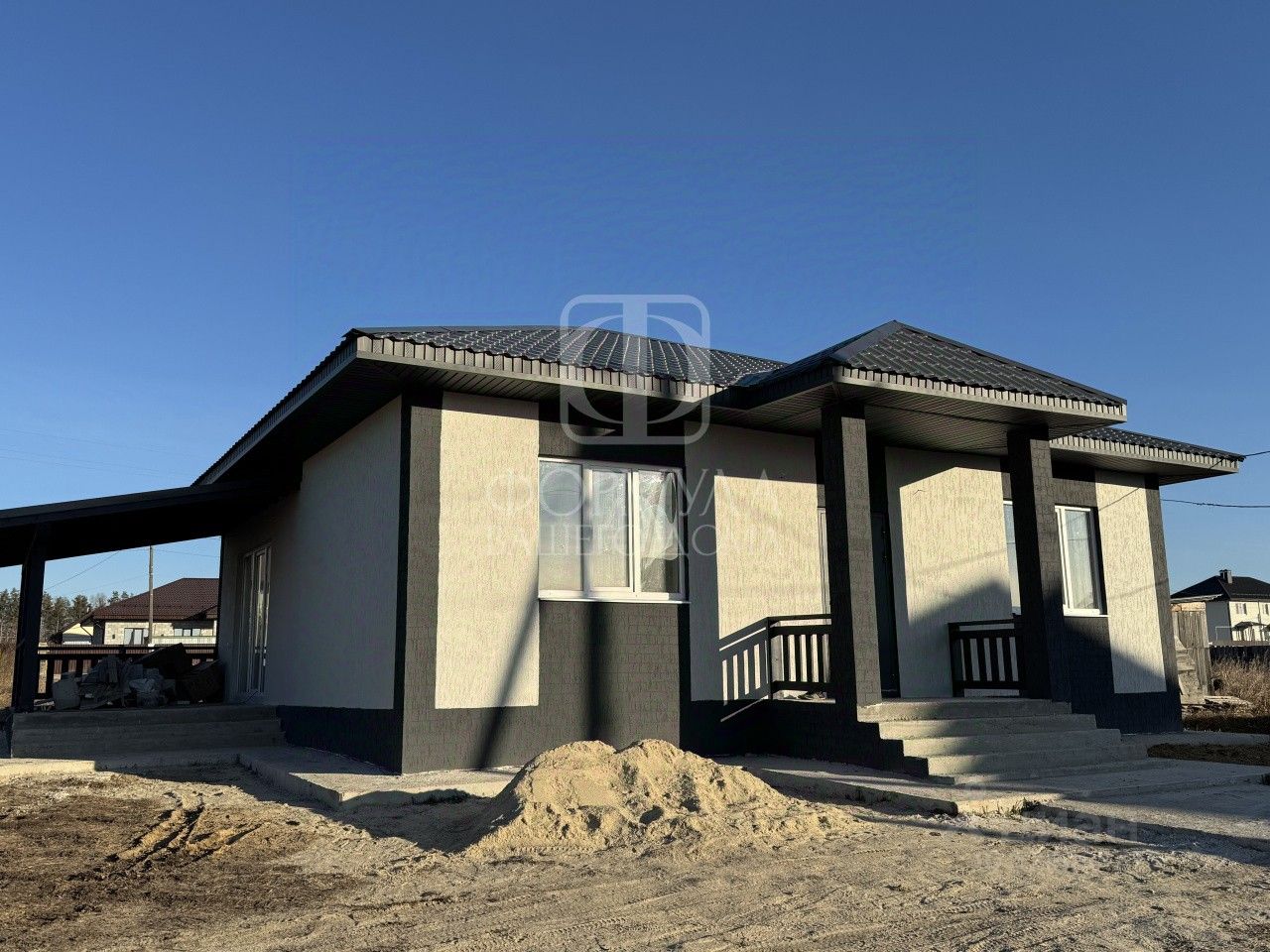 На полу керамогранит, межкомнатные двери, натяжные потолки со светильниками, в санузле плитка, в котельной котел, водонагреватель, будут установлены унитаз, раковина.