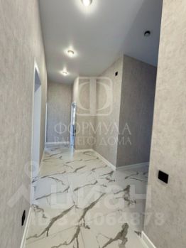 На полу керамогранит, на стенах обои, межкомнатные двери, натяжные потолки со светильниками, в санузлах плитка, в котельной котел, водонагреватель.