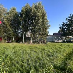 Участок 16 соток, разделен на две части, жилая огорожена полностью забором из профлиста, стоят ворота. На участке находится отапливаемая бытовка.