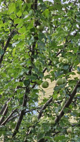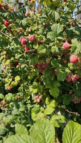 Плодовые посадки: яблони двух сортов, груша, вишня, крыжовник, жимолость, чёрная смородина, малина.