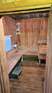На участке расположены: баня с зоной отдыха, летний душ, сарай для дров и садового инвентаря, металлический бак для полива, теплицы, глубокая скважина с артезианской водой.