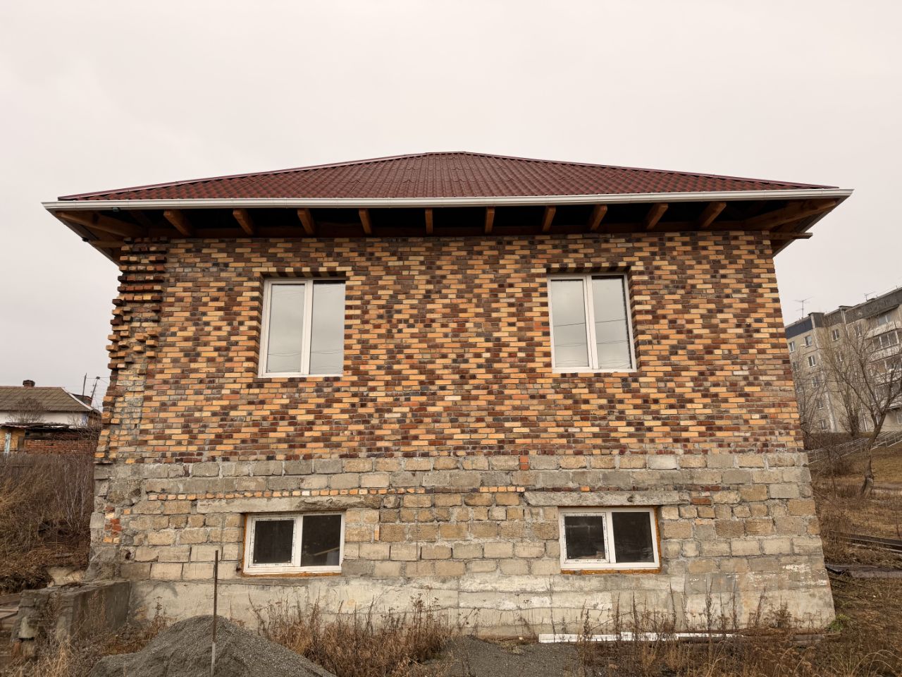 Сделана скважина 86 метров. Сделан забор с одной стороны от соседей, так же пробурены ямы для столбов. Второй этаж без перегородок, полностью готов под ваши идеи, стоят стеклопакеты. Дом построен из кирпича на очень хорошем Фундаменте. На участке остается 6 поддонов кирпича, утеплитель. Участок выровнен и без насаждений, готов для вашего творчества. За дополнительную плату можем предложить проф лист для забора .