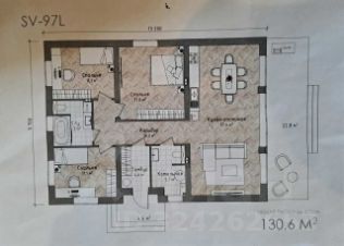 * просторная кухня-гостиная 37,4 м2 с потолками 6 метров и с выходом на террасу