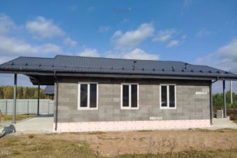 Дом построен из бризолита - это строительный материал, блоки (древесная щепа хвойных пород, цемент, минеральные добавки) для монолитного строительства. Долговечность, лёгкая отделка, пожаробезопасность, высокая звукоизоляция, геометрическая точность.