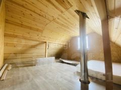 Материал стен - твин блок. Фундамент ленточный, усиленный сваями. Мансардный этаж обшит, но нет лестницы. Крыша ондулин.