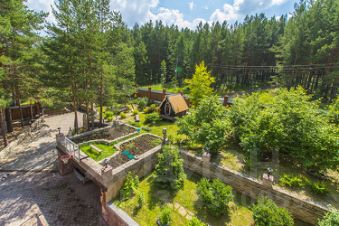 На участке с вековыми соснами и ландшафтным дизайном расположились: