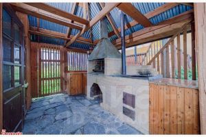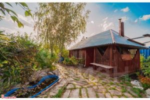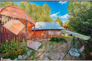 На участке есть хорошая просторная баня с комнатой отдыха, большая беседка с барбекю, крытое место для установки бассейна, качели, лужайка и цветы. Участок разработан, ухожен. Есть место для хранения инвентаря (сарай), есть мостки для выхода к воде. И достаточно места для строительства дома и складирования материалов.