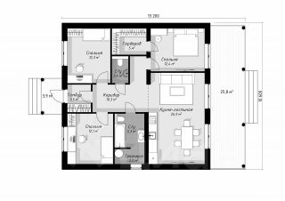 - Просторная крытая терраса — 25,8 м2.