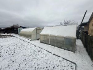 На участке: Две теплицы, бытовка, сарай, уличный туалет, насаждения.