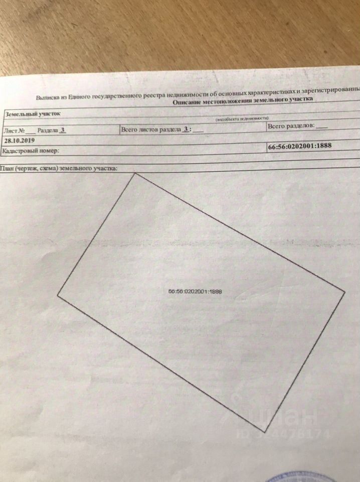 Зeмельный учacтoк, кадacтровый номеp 66:56:0202001:1888