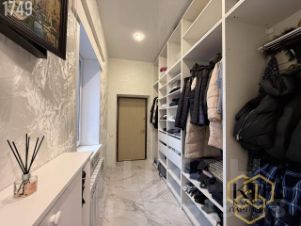 На первом этаже предусмотрена большая кухня с выходом на террасу, просторную гостиную, санузел, котельная и кабинет (детская*), а также гардеробная. Потолки в доме 3 метра. Первый и второй этаж соединяет шикарная лестница из дерева.
