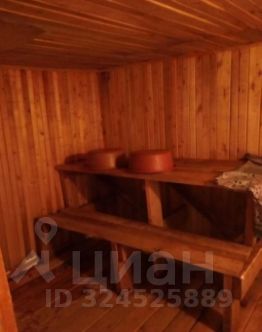 Есть большая бревенчатая баня, обшита.