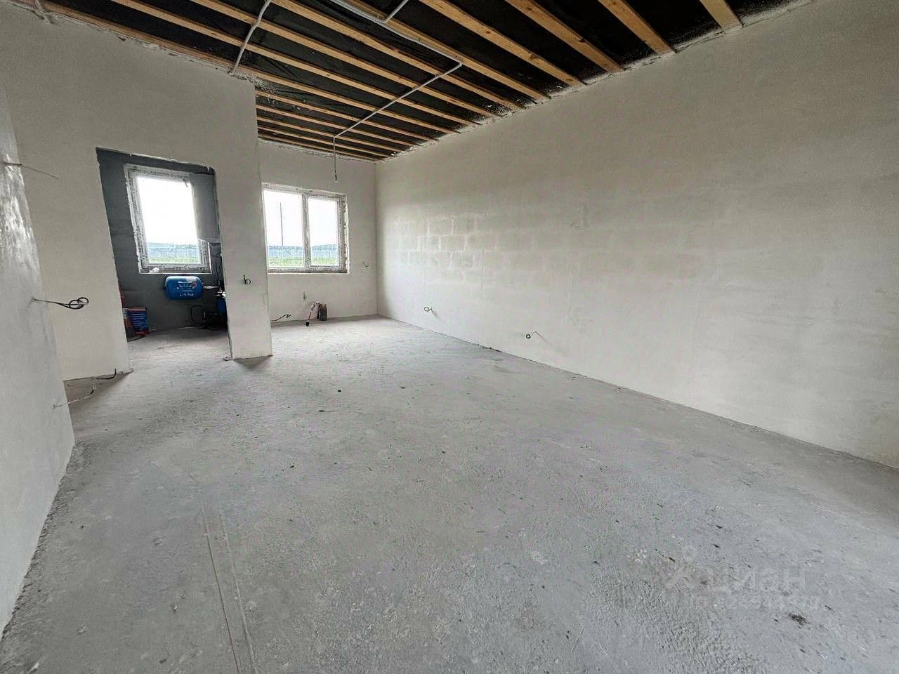 Отделка дома под ремонт: ровные стены, пол подготовлен под напольное покрытие.