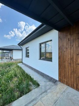 Материал дома: Газоблок , утеплитель базальтовая вата на 50, декоративная штукатурка и вставки из дерева.