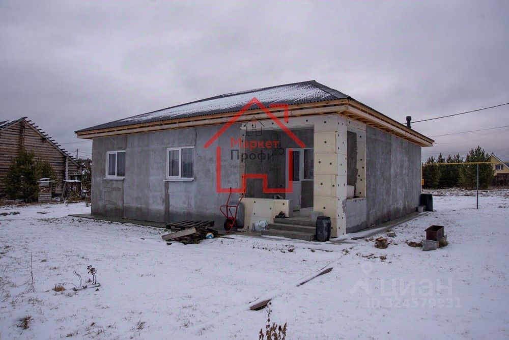 Дом не покрашен снаружи. Забор отсутствует.