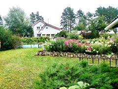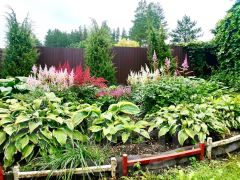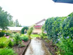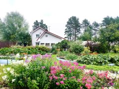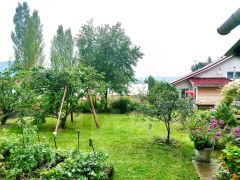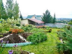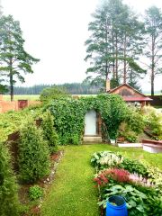 Участок благоустроен и насыщен разнообразной растительностью: богатый выбор цветов, фруктовых деревьев и декоративных насаждений создают атмосферу уюта и гармонии с природой. Есть теплица, благодаря которой вы сможете выращивать свежие овощи и зелень. На участке разместились два хозяйственных блока, гараж, навес для автомобиля, погреб для хранения свежих заготовок и баня — отличный вариант для отдыха и релаксации.