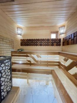 теплый пол), для сауны - дровяная печь. Водонагреватель. Спутниковое телевидение. Дом